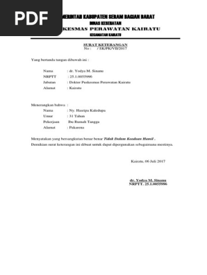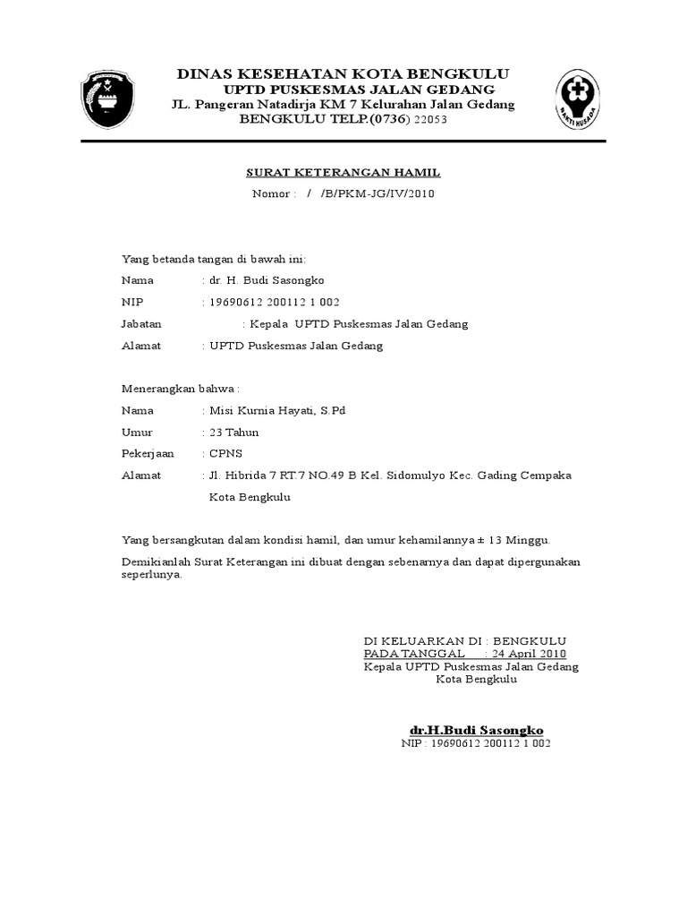 Surat keterangan hamil dari puskesmas. Contoh surat keterangan hamil muda kumpulan ilmu dan. Yang bertanda tangan di bawah ini : Cuti melahirkan umumnya harus diberikan 1 hingga 3 bulan sebelum masa melahirkan sehingga harus diperhitungkan dan dipersiapkan dengan baik. Surat keterangan dokter bisa digunakan sebagai lampiran pada surat izin ketika seseorang tidak masuk. Yang bertanda tangan di bawah ini bidan puskesmas banjarangkan ii dengan ini menerangkan bahwa : 297 contoh surat lamaran kerja download doc cara membuat. Supaya lebih jelas simak salah satu contoh surat keterangan penghasilan berikut ini. Cara membuat surat keterangan sehat dari dokter dan persyaratannya lengkap sepositif. Softgaleri adalah blog yang berbagi informasi kode administrasi dalam surat menyurat administrasi. Contoh surat keterangan dokter untuk bpjs have an image from the other.contoh surat keterangan dokter untuk bpjs it also will include a picture of a kind that may be seen in the gallery of contoh surat keterangan dokter untuk bpjs. Doc dokumentips surat dokter lavalette heri wardi utomo. Contoh surat keterangan sakit dari dokter kumpulan ilmu.